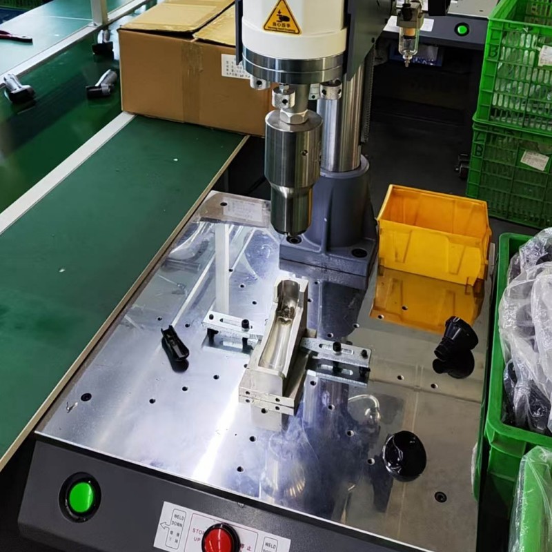 Ультразвуковая сварка (UW) — это высокоэффективный процесс соединения пластиковых сборок, широко используемый в массовом производстве (на изображении показана машина, интегрированная с производственной линией). Он склеивает термопластичные детали с помощью высокочастотных механических вибраций и контролируемого давления, без клея и крепежных элементов.